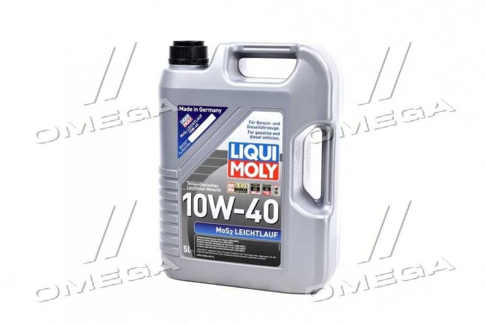 Напівсинтетична моторна олія Liqui Moly MoS2 Leichtlauf 10W-40 з додаванням дисульфіду молібдену - "візитної картки" компанії Liqui Moly, ефективність рецептури якої перевірена десятиліттями. Олія призначена для бензинових та дизельних двигунів (у тому числі для турбомоторів) нових автомобілів (без спеціальних вимог до масла от автовиробників), а також для автомобілів з великим пробігом, що експлуатуються в жорстких умовах. Має сіро-чорний колір за рахунок вмісту суспензії дисульфіду молібдену.